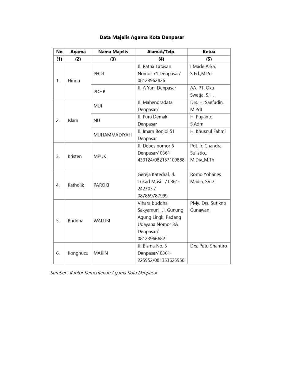 MAJELIS-MAJELIS AGAMA dan KEAGAMAAN di KOTA DENPASAR